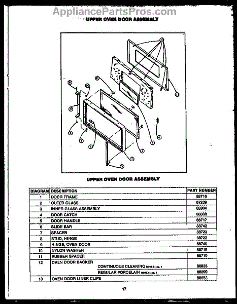 Parts for Caloric RMD369: Upper Oven Door Assembly (Rmd393) (Rld112) (Rld312) (Rld340) (Rld341) (Rld352) (Rld354) (Rld335) (Rmd335) (Rld351) (Rld353) (Rld364) (Rmd364) (Rld395) (Rmd395) (Rmd399) (Rmd269) (Rld313) (Rld345) (Rld346) (Rld357) (Rmd357) (Rld359) (Rmd359) Parts