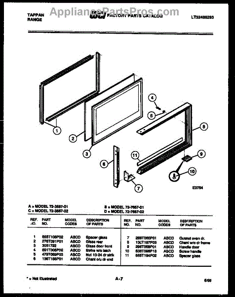Parts for Frigidaire 72-3657-23-02: 07 - Upper Oven Door Parts