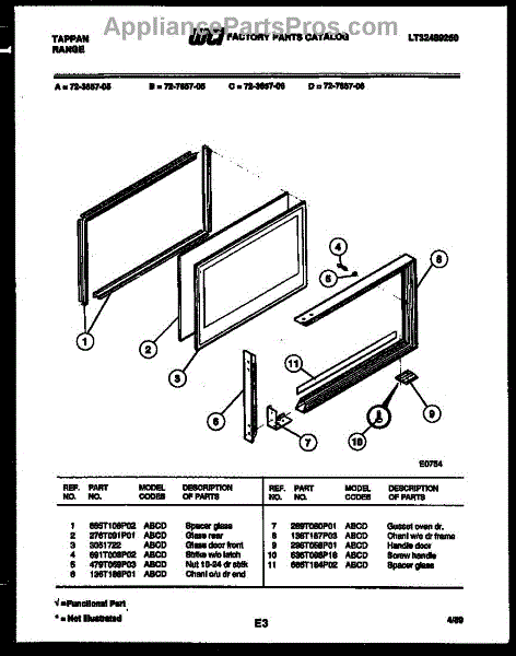 Parts for Frigidaire 72-3657-66-06: 07 - Upper Oven Door Parts