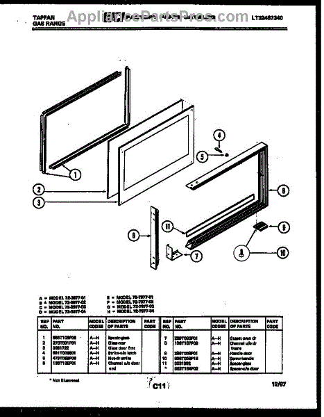 Parts for Frigidaire 72-3977-23-03: 09 - Upper Oven Door Parts