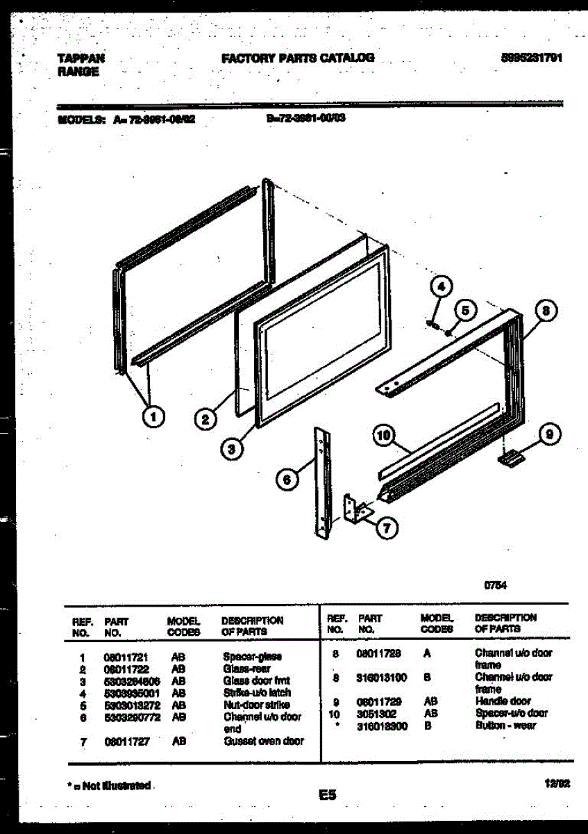 Parts for Frigidaire 72-3981-00-02: 09 - Upper Oven Door Parts
