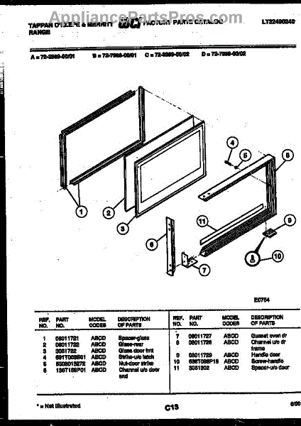 Parts for Frigidaire 72-3989-00-02: 09 - Upper Oven Door Parts