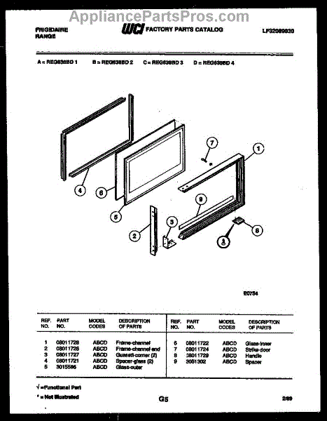 Parts for Frigidaire REG638BDW3: 05 - Upper Oven Door Parts