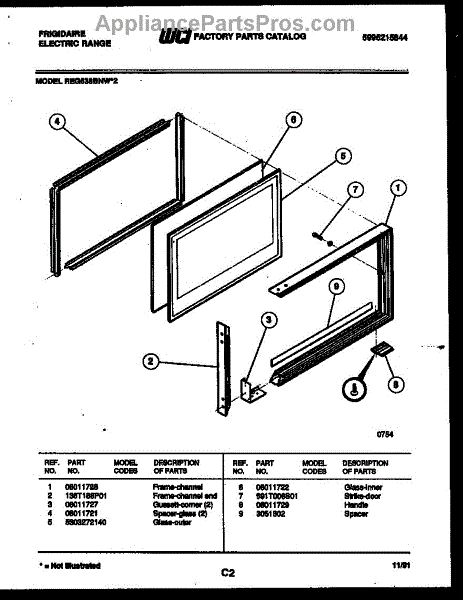 Parts for Frigidaire REG638BNW2: 05 - Upper Oven Door Parts