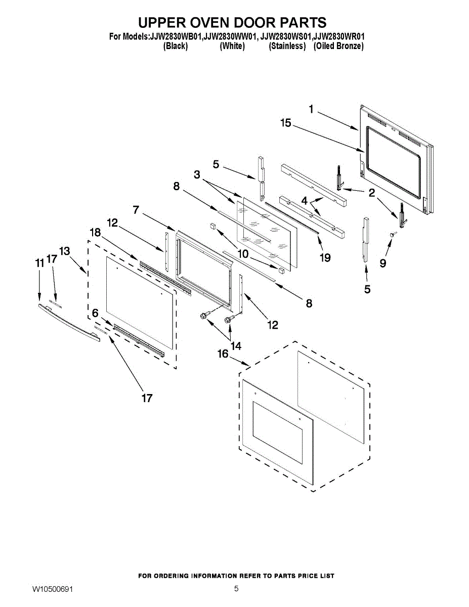 This oven outer door is a vital component for the appliance to power on and perform cook functions. If the oven door becomes damaged the appliance may not power on or heat efficiently. A crack in the glass or any warping or bending of the door will not hold in heat, and some ovens won't even power on if the door is compromised in any way. A replacement door should be ordered in this situation. When installing a new door or any other large part, two people should be used to avoid damage. On the original appliance, there should be holes for screws on the sides of the hinges that attach to the new door.This Whirlpool oven outer door is a genuine OEM replacement part sourced directly from Whirlpool. The product listed is not included with any other components or the original appliance. This product is compatible with Whirlpool, KitchenAid, Maytag, and JennAir products.
