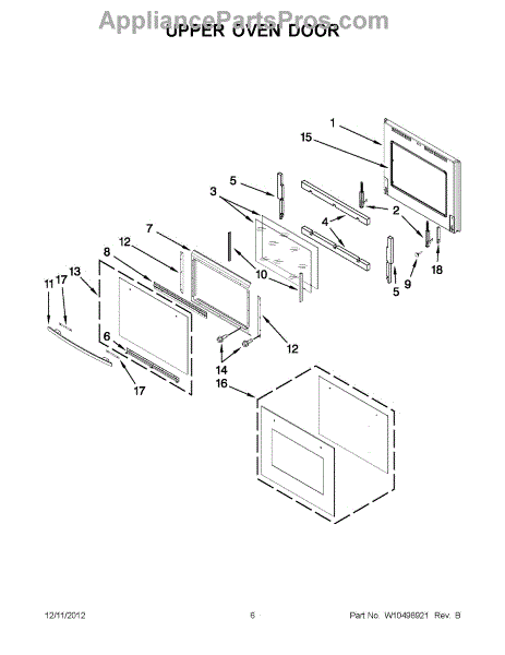 This oven outer door is a vital component for the appliance to power on and perform cook functions. If the oven door becomes damaged the appliance may not power on or heat efficiently. A crack in the glass or any warping or bending of the door will not hold in heat, and some ovens won't even power on if the door is compromised in any way. A replacement door should be ordered in this situation. When installing a new door or any other large part, two people should be used to avoid damage. On the original appliance, there should be holes for screws on the sides of the hinges that attach to the new door.This Whirlpool oven outer door is a genuine OEM replacement part sourced directly from Whirlpool. The product listed is not included with any other components or the original appliance. This product is compatible with Whirlpool, KitchenAid, Maytag, and JennAir products.