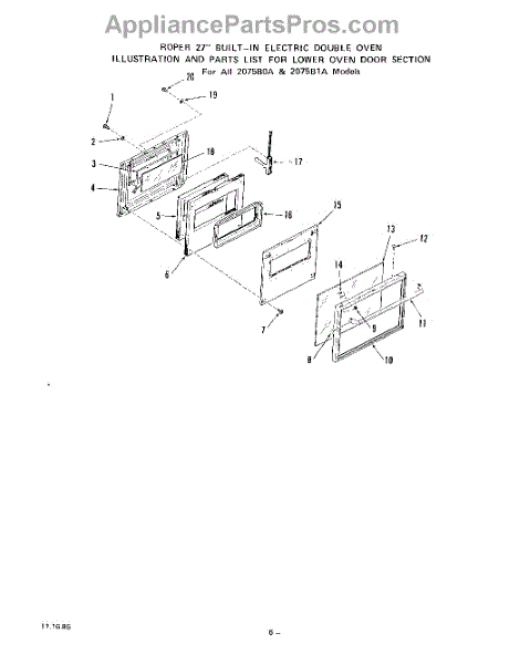 Parts for Roper 2075B1A: 05 - Upper Oven Door Parts