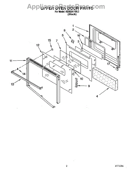 Parts for Kitchenaid KEBI241YBL2: 02 - Upper Oven Door Parts
