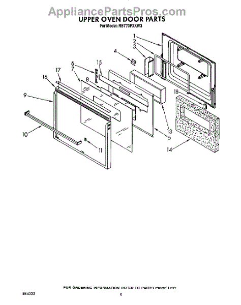 Parts for Whirlpool RB770PXXW3: 05 - Upper Oven Door Parts