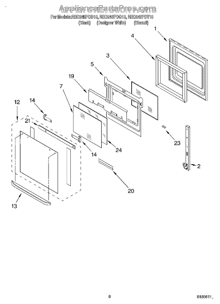 Parts for Whirlpool RBD245PDB10: 04 - Upper Oven Door Parts