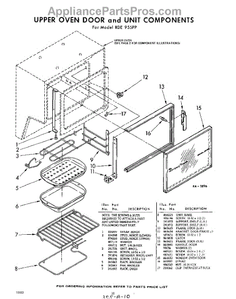 Parts for Whirlpool RDE955PP: 10 - Upper Oven Door And Unit Parts