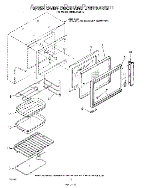 Parts for Whirlpool RE953PXKT2: 12 - Upper Oven Door And Unit Parts