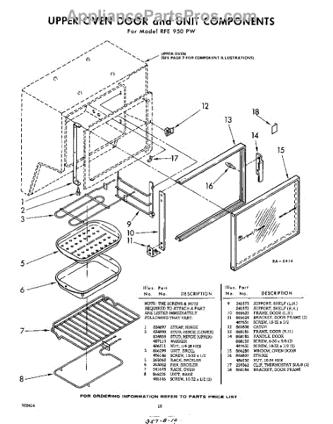 Parts for Whirlpool RFE950PW: 10 - Upper Oven Door And Unit Parts