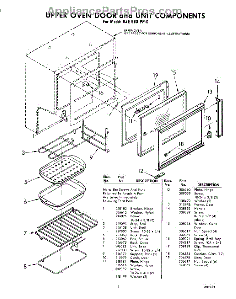 Parts for Whirlpool RJE963PP0: 05 - Upper Oven Door And Unit Components Parts