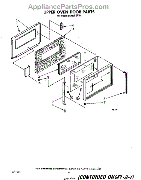 Parts for Whirlpool SE950PERW0: 09 - Upper Oven Door Parts