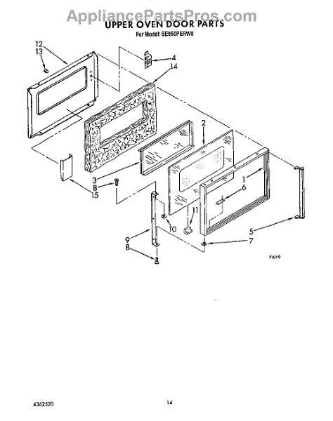 Parts for Whirlpool SE950PERW8: 09 - Upper Oven Door Parts