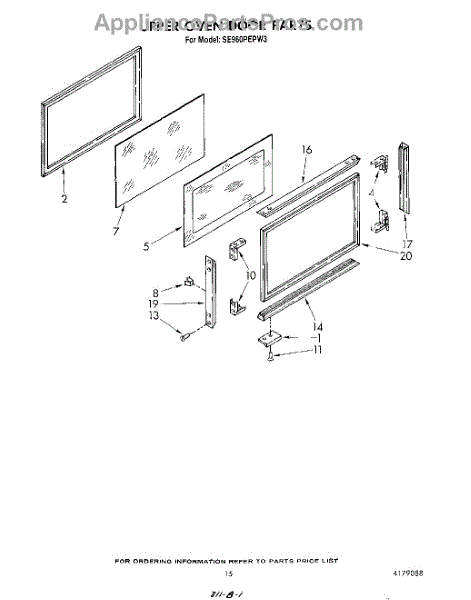 Parts for Whirlpool SE960PEPW3: 10 - Upper Oven Door Parts