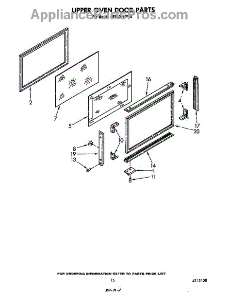 Parts for Whirlpool SE960PEPW4: Upper Oven Door Parts