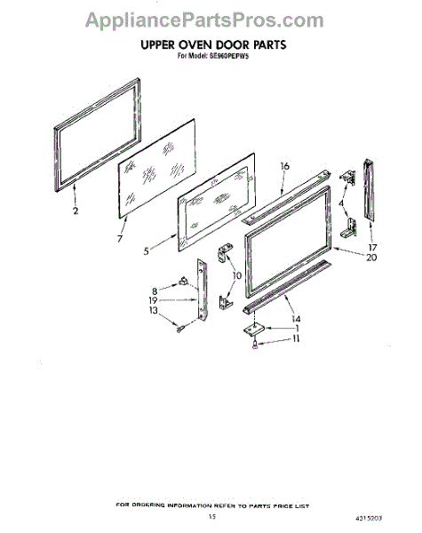 Parts for Whirlpool SE960PEPW5: 10 - Upper Oven Door Parts