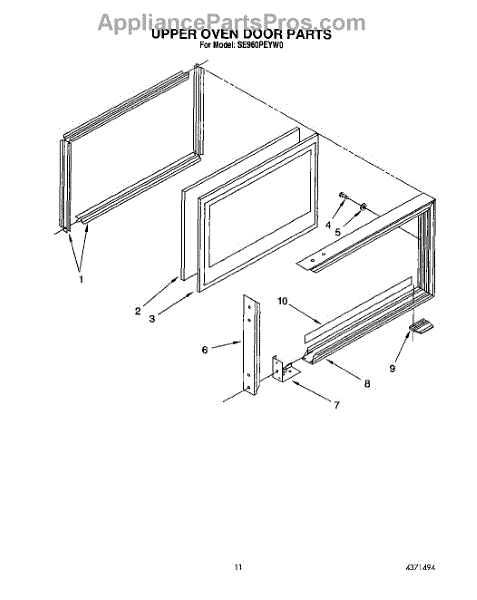 Parts for Whirlpool SE960PEYW0: 09 - Upper Oven Door Parts