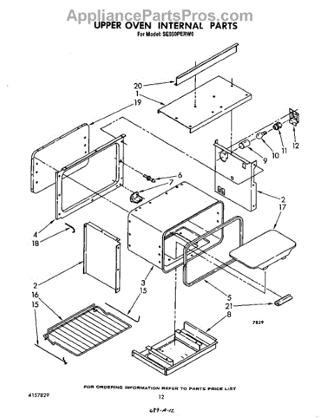 Parts for Whirlpool SE950PERW0: 08 - Upper Oven Internal, Lit / Optional Parts