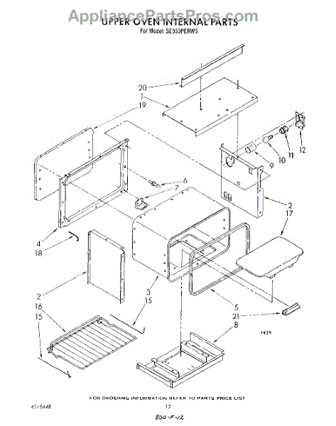 Parts for Whirlpool SE950PERW5: 08 - Upper Oven Internal, Lit / Optional Parts