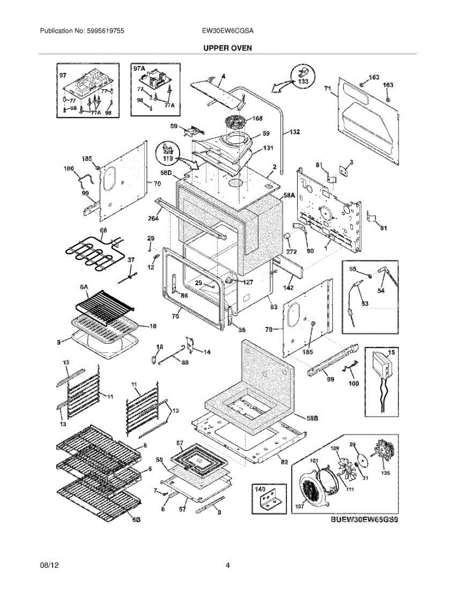 Insulates and cushions the oven cabinet interior. Replace if cracked, damaged, or missing to restore thermal separation and reduce condensation.