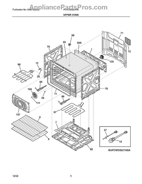 The Rack is an OEM replacement part for Frigidaire wall ovens. It is designed to provide a stable and secure surface for placing cookware and bakeware inside the oven. Causes of a bad rack can include warping or bending from exposure to high oven heat over extended use. Heavy pots or pans dragged across rack surfaces may puncture or dent racks over time. Symptoms of a bad rack include: