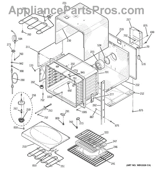 The Broiler Assembly is an OEM replacement part for GE range. Located inside the oven, it houses the heating elements responsible for the broil cooking function. Causes of a bad broiler assembly can include cracked or burnt-out heating elements that no longer ignite, damage from accidentally being cleaned with abrasive chemicals, or warping of metal components from overheating. Symptoms of a bad broiler assembly include: