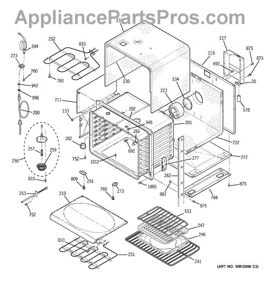 The Broiler Assembly is an OEM replacement part for GE range. Located inside the oven, it houses the heating elements responsible for the broil cooking function. Causes of a bad broiler assembly can include cracked or burnt-out heating elements that no longer ignite, damage from accidentally being cleaned with abrasive chemicals, or warping of metal components from overheating. Symptoms of a bad broiler assembly include: