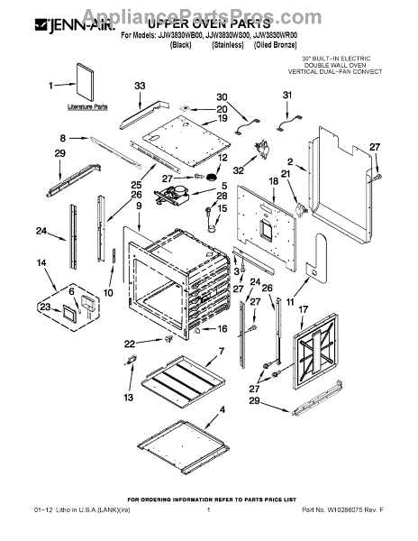 Parts for Maytag JJW3830WS00: 01 - Upper Oven Parts