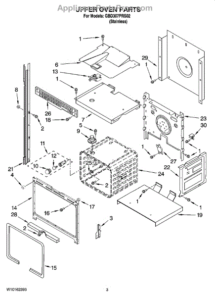 This factory screw secures appliance components to their mounting points. Replace missing, worn, or stripped hardware to restore a tight fit, proper alignment, and quieter operation across the affected assembly.