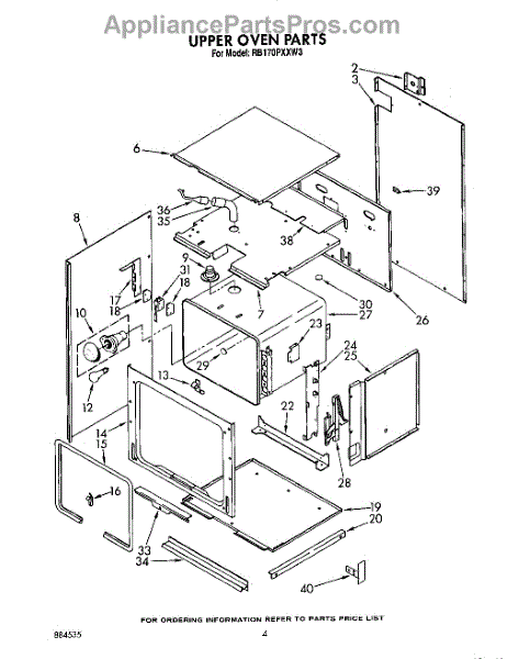 Parts for Whirlpool RB170PXXW3: 03 - Upper Oven Parts