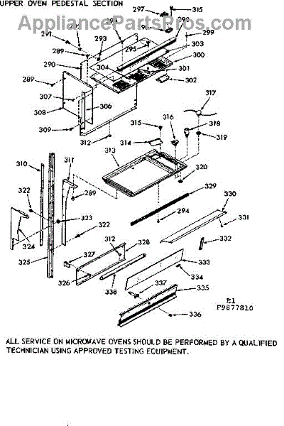 Parts for Kenmore 103.9877810 (1039877810, 103 9877810): Upper Oven Pedestal Section Parts