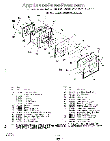 Parts for 2889W10
