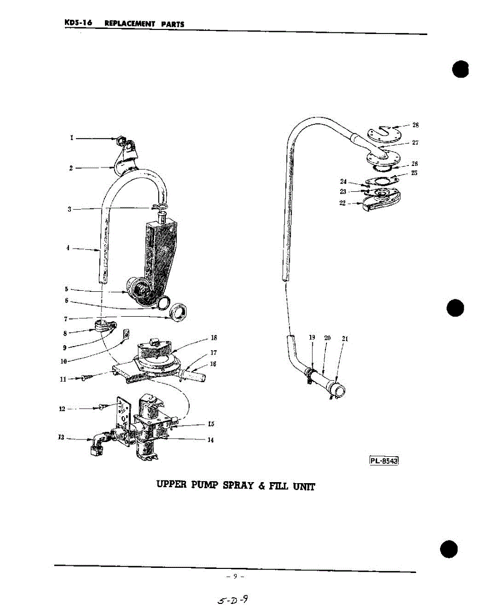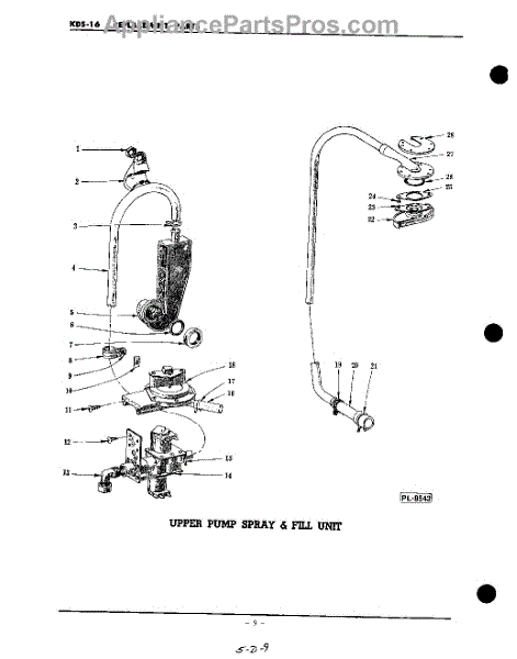 Parts for Kitchenaid KDS16WSC: 09 - Upper Pump Spray And Fill Parts