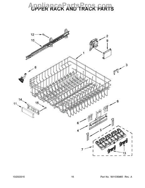 Replace your dishwasher's upper dishrack assembly when the top rack is cracked, rusted, or damaged. Restores secure dish organization and smooth sliding.