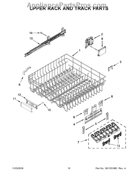 This upper dishrack assembly restores a solid, organized top rack for cups and bowls and smooth sliding on the rails. Replacing a damaged or rusted rack helps keep items secure and positioned for effective washing.