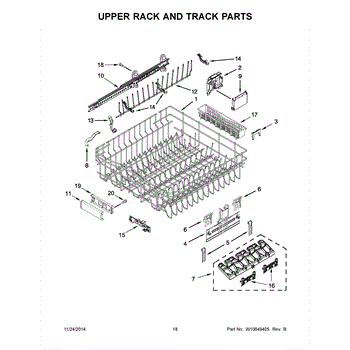 The Upper Dishrack is an OEM part for Whirlpool dishwashers. This dishrack is designed to hold dishes, glasses, and other items securely in the upper part of the dishwasher during the wash cycle, allowing for effective cleaning and efficient use of space.