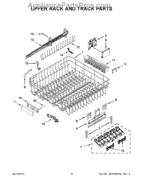 The Upper Rack Adjuster is an OEM part for Whirlpool dishwashers. This part adjusts the height of the dishwasher's upper rack, allowing for flexible loading options and accommodating larger items such as pots, pans, and tall glasses.