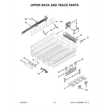 The Upper Rack Adjuster is an OEM part for Whirlpool dishwashers. This part adjusts the height of the dishwasher's upper rack, allowing for flexible loading options and accommodating larger items such as pots, pans, and tall glasses.