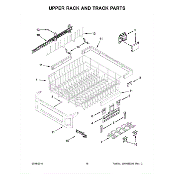 The Upper Rack Adjuster is an OEM part for Whirlpool dishwashers. This part adjusts the height of the dishwasher's upper rack, allowing for flexible loading options and accommodating larger items such as pots, pans, and tall glasses.