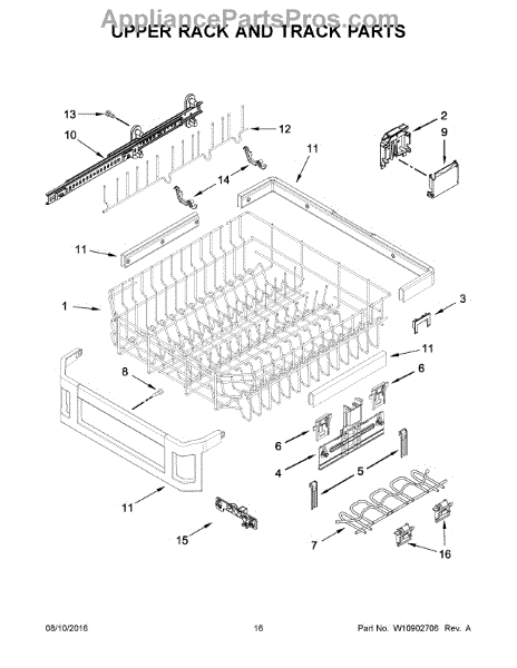 Replace a worn or damaged lower dishrack to restore secure dish placement and smooth loading. This direct-fit dishrack provides the rack frame and tines needed to hold plates, bowls and cookware during normal dishwasher cycles. What it does