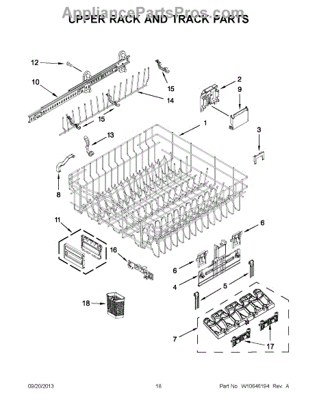 The Upper Dishrack is an OEM part for Whirlpool dishwashers. This dishrack is designed to hold dishes, glasses, and other items securely in the upper part of the dishwasher during the wash cycle, allowing for effective cleaning and efficient use of space.