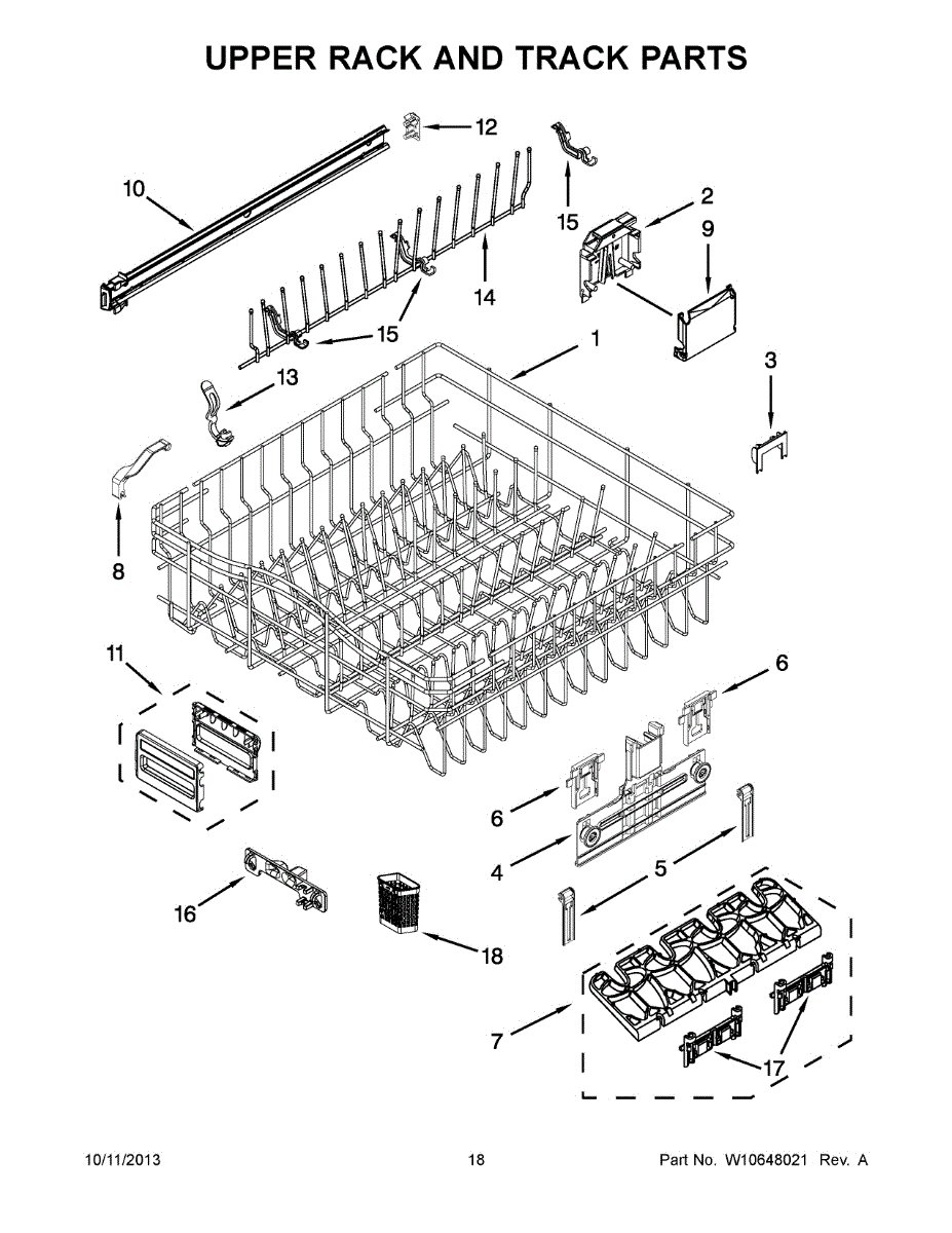 Replacement upper dishrack for dishwashers. Holds dishes and glasses in the top position. Order if your original rack is rusted, cracked, or broken.