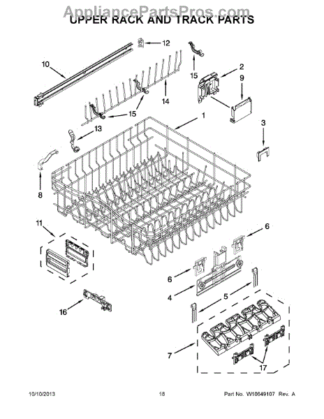 Parts for Kitchenaid KUDS35FXSSA: 10 - Upper Rack And Track Parts