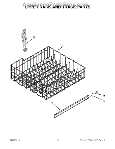 The Upper Dishrack Rail is an OEM replacement part for Whirlpool dishwashers. It guides upper racks in and out for easy access to dishes.