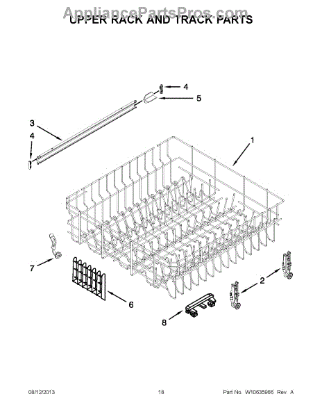 Parts for Whirlpool 7WDF530PAYM6: 10 - Upper Rack And Track Parts