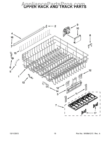 The Upper Dish Rack is an OEM replacement part for Whirlpool dishwashers. Located on the upper level inside the tub, it provides an area for washing smaller dishes, utensils, and glasses.