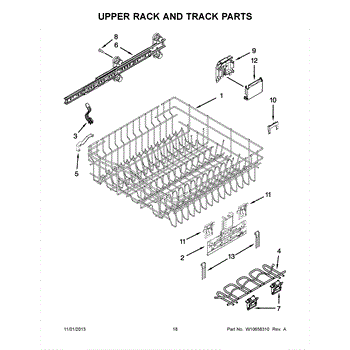 The Track, Asm (RH) is an OEM part for Whirlpool dishwashers. It is the right-hand side track assembly that supports and guides the dishwasher's upper rack as it slides in and out. This part ensures that the rack moves smoothly and securely, allowing for easy loading and unloading of dishes while preventing disruptions during the wash cycle.